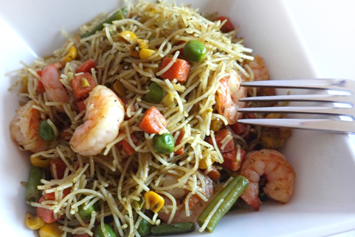 Stir-fried in olive oil vegetable mix, soy sauce, King Prawn and rice noodles. Dishes can be prepared without soy sauce if preferred (please let us know).
